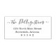 A modern combination of a beautiful script font with swooshes on either side for the family name and a classic serif font for the address. The return address stamp can be used for your Christmas holiday cards and party invitations as well as throughout the rest of the year. Having a rubber stamp to affix your return address will save you a lot of always-needed time.