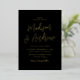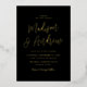 Elegant wedding invitations featuring your names displayed in a handwritten gold foil script with a black background. Personalize the simple gold foil wedding invitations with your wedding details. Designed to coordinate with our Simple Script wedding collection.