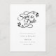 This simple script black and white save the date card features a beautiful script save the date with a pretty leaf motif above your details set in elegant text.