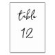 Help your guests find their seats with this elegant black and white table card. The letters and numbers are in a script font.