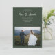 You can pick to download your Simple Script Forest Green Two Photo Wedding Invitation from 4 file types: PNG, JPG, Standard PDF, and Print PDF. These 4 file formats have been selected so they cover all your inviting needs. PNG and JPG are great for sending your invitation digitally and PDF and Print PDF are great if you want to print your invitation yourself.