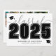 A classic yet modern horizontal graduation announcement. The front features an oversized "Class of 2025" in bold black and white with elegant gray script accents. Two graduation cap icons add a celebratory touch, with space below for the graduate's name and school. Colors can be customized to match school colors for a personalized look.