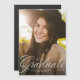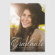 A classic and elegant script graduate in white sits at the bottom of a vertical photo. The custom text includes room for the graduate's name and also school and year details. This magnetic card is the perfect way to announce your graduate's accomplishment to friends and family!
