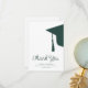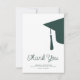 Modern trendy script dark emerald green and white simple minimalist graduation thank you card template featuring a graduation cap with tassels. ++++++++++ Easy to personalize with your details and custom text!