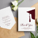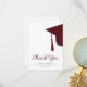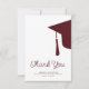 Modern trendy script dark red burgundy and white simple minimalist graduation thank you card template featuring a graduation cap with tassels. ++++++++++ Easy to personalize with your details and custom text!