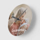 Simple Script Grandma Est.Photo Year Black Round Clock