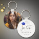 Simple script high school graduate photo keychain perfect as a commemorative keepsake or favor gifts for their graduation. Personalize it with your photo and change the text with the name of the graduate, high school or college and class. Illustrated and designed by Patricia Alvarez.