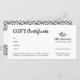 Minimalist gift certificate template featuring a modern script and typewriter font mix, your business details and logo, and a sample text for your terms and conditions. Back with placeholder for your website and a hand-drawn heart pattern in black. Explore chic printable and easy to customize gift certificates and matching business cards by © y.BEE PAPERIE #zazzlemade #giftcertificatetemplate #printablegiftcertificate