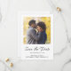 Modern photo Wedding Save the Date card with a simple script design. With customizable lettering, you add your names, and wedding information. You can also add your own photo to add a touch of personalization. An elegant boho announcement for planning your special day.