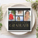 Simple Script Multi Photo Grad Graduation Party Paper Napkins Tableware features four of your favorite photos of your college or high school graduate with the elegant modern gold calligraphy script "Graduate" overlay. Personalize with name, class of and school or college. Simple, stylish and classy. Created by ©Evco Studio www.zazzle.com/store/evcostudio