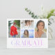 Simple Script Multi Photo Graduation Announcement Card features four of your favorite photos of your college or high school graduate on the front with the elegant modern purple calligraphy script "Graduate" overlay. Add an additional photo on the reverse. Simple, stylish and classy. Created by ©Evco Studio www.zazzle.com/store/evcostudio