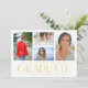 Simple Script Multi Photo Graduation Announcement Card features four of your favorite photos of your college or high school graduate on the front with the elegant modern gold calligraphy script "Graduate" overlay. Add an additional photo on the reverse. Simple, stylish and classy. Created by ©Evco Studio www.zazzle.com/store/evcostudio