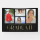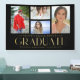 Simple Script Multi Photo Graduation Announcement Banner features four of your favorite photos of your college or high school graduate on the front with the elegant modern gold calligraphy script "Graduate" overlay. Perfect for a Graduation Party Simple, stylish and classy. Created by ©Evco Studio www.zazzle.com/store/evcostudio