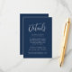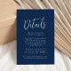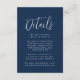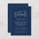 Modern wedding details cards featuring your wedding details displayed in white lettering with a navy background. Add details such as hotel accommodations, welcome reception information, wedding website, etc. Designed to coordinate with our Simple Script wedding collection.