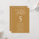 Modern wedding seating chart featuring "Table" displayed in a white script with the table number and guest names shown below on an ochre background. The design repeats on the back. To order the table number seating chart, edit each card with the table number and guest names and add it to your cart. Designed to coordinate with our Simple Script wedding collection.