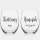 Simple Script Personalized Bridesmaid Bridal Party Stemless Wine Glass