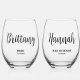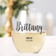 Simple Script Personalized Bridesmaid Bridal Party Stemless Wine Glass