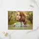 Trendy modern photo postcard inviting your family and friends to your daughter's graduation party. Simple Script Photo Graduation Party Invitation for 2015. Design by Elke Clarke © Visit our shop www.zazzle.com/monogramgallery* for more designs and styles. A simple white typography handwritten script font text overlay (printed photo effect) with the words "2015 Graduate". Replace sample photo with your own. White and gold colors. Gold ombre effect. Other styles and colors available.