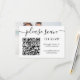 A simple elegant script RSVP enclosure card featuring your own QR code and wedding website details set in chic typography and special photo on the reverse. Designed by Thisisnotme©