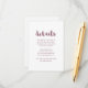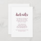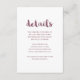 Rose pink and white wedding guest details card features whimsical script typography and a minimal design.