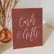 This elegant wedding pedestal sign features the phrase "Cards and Gifts" in white script on a vibrant rust background, adding a touch of warmth and sophistication to your celebration. You can personalize the sign with custom text, such as your names, wedding date, or a thank-you message, to make it uniquely yours. Ideal for weddings, this versatile sign can also be used for other events like bridal showers, baby showers, birthday parties, and more. With its charming design, it not only helps direct guests but also enhances the overall aesthetic of your special occasion.