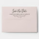 Designed to coordinate with the Lea Delaveris Design simple script save the date collection, this envelope is the perfect way to send your engagement announcements. Coordinate your suite with this simple and elegant script on a blush pink back. The front has a matching "Deliver to" while the back has "save the date" in the same script along with your return address.