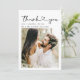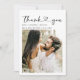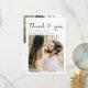 Express your gratitude with our Simple Elegant Script Text and Photo Wedding Thank You Card! Featuring a clean, minimalist design, this card showcases your favorite wedding photo alongside a heartfelt message of thanks. The elegant typography adds a touch of sophistication, making it the perfect way to show appreciation to your guests for celebrating your special day. Personalize it with your names and a custom message to make it uniquely yours. Ideal for newlyweds seeking a timeless and stylish way to say "thank you," this card will leave a lasting impression on your loved ones!