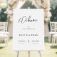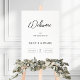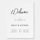 Our simple yet elegant welcome sign design is perfect for welcoming your guests to your wedding celebration. A beautiful pairing of black calligraphy font with simple and clean text on a white background makes for an elevated look to complement your stylish day. Easy & quick to customise yourself with all your own details!