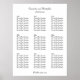 A seating chart in black and white in a pretty, cursive, script font. This is for nine tables with eight guests each. Each table list is aligned to the left to keep it neater looking. You can change that when you customize. If you want to change the colors, click "customize", then click on the text you want to change. Font colors are under the big picture. The background color will be at the bottom right.