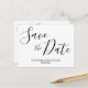 Simple wedding Save the Date postcards with changeable script black text (you can change text) printed on white background