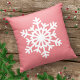 Beautiful classic white abstract snowflake on a December holiday blush pink classic background on one side, and opposite colors on the other side. A classy winter season design for the interior designer, or cottage country style lover who loves winter Christmas holiday themes. Original modern cushion for decorating your log cabin, cottage, lake or river vacation home.