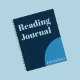 This reading journal has a dark blue cover and light blue text. You can edit the text to show a custom message. (Shown: Reading Journal) Additional text can be changed to show the recipient's name. The text for the name is near the bottom corner. Reading journals are a popular tool to use as a book tracker. Some readers prefer to use their reading journals as a commonplace book.
