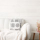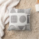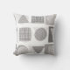 This 16" x 16" throw pillow features hand drawn circle, triangles and squares in shades of gray on a natural background.