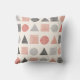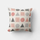 This 16" x 16" throw pillow features hand drawn circle, triangles and squares in raspberry cream, gray and black.