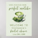 Simple Minimalist She Found Her Perfect Matcha Bridal Shower Welcome Sign Poster - Celebrate the bride to be with a matcha tea party themed bridal shower. Perfect for the bride who loves matcha, enjoys tea and all things health and wellness. This minimal bridal shower welcome sign poster features a watercolor illustration of a rich cup of frothy matcha tea with creamy milk on a saucer on a minty sage green background. The handwritten script font brings together a fun and casual yet elegant aesthetic. Perfect for spring, summer and even fall bridal tea parties or cozy bridal soirees. Frame this poster in your favorite frame and display at your bridal shower.