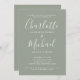 Plain white envelopes are included with paper invitations and will come to fit the invitation size you select. If you don’t need the envelopes, you may choose to not receive them by selecting the dropdown below "Envelopes" and choosing "None." If you’d like to have a design on your envelopes, you can browse all of these available envelopes to find the design that complements your Simple Signature Script Sage Engagement Party Invitation.