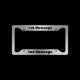 This faux silver license plate frame has black text at the top and bottom. You can edit the text to show personalized messages. The brushed metal look is artwork.