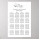 This simple silver calligraphy wedding seating chart poster is perfect for an elegant wedding. The silver sparkle design features chic typography and a luxurious metallic heart. This wedding poster includes enough room for up to 16 tables (160 guests). In addition to the placement of each guest, personalize this sign with the names of the bride and groom and the wedding date.