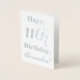 This simple and elegant silver foil birthday card design features a message like "Happy 11th Birthday, Alexandra!" on the front. The name ("Alexandra") can be changed to personalize the card. The inside features a customizable message like "May your 11th birthday be a happy and joyful one!". It could be given to somebody who is celebrating their eleventh birthday. [~Z0000009]
