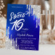 Simple Silver Glitter Drips Blue Sweet 16 Invitation
