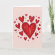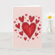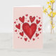 This design shows a large red heart in the middle, filled with short up-and-down strokes that look a bit like crayon. Around it, lots of smaller red hearts float outward, each with a slightly rough black outline and the same textured red fill. The hearts vary in size and feel scattered in a natural way, like love is spreading in every direction. Everything sits on a soft blush-pink background that makes the reds stand out and feel extra warm. There isn’t any text on the front, so the hearts do all the talking. The imperfect lines and visible strokes make it feel honest and real, like something you’d draw when you truly care. It’s a sweet choice for romance or close friendship, because it says “I’m thinking of you” without needing many words 🥰❤️.