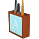 Simple Sky Blue Monogram Desk Organizer