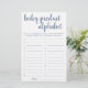 "Alphabet Race Baby Product Game" Simple baby shower or gender reveal party ABC race game card featuring a fun, casual hand-lettered script. The classic design includes a modern handlettered quote typography overlay. For other colors or matching products, please visit the JustFharryn Zazzle store, or contact the designer, c/o Fharryn@yahoo.com All rights reserved. #bohochic #zazzlemade