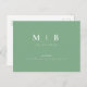 Simple & Sleek Monogram Green Save the Date Announcement Postcard