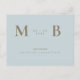 Simple & Sleek Monogram Icy Blue Save the Date Postcard