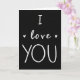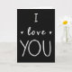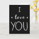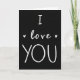 This card shows a deep black front with simple white lettering that says “I love YOU” ❤️. At the top, a single “I” sits by itself, giving the message a quiet, direct start. In the middle, the word “love” is written in a flowing, cursive-like letter style, and it feels soft and gentle. Two tiny heart shapes sit near “love,” like little accents that add extra warmth. At the bottom, “YOU” appears in larger capital letters, making it clear who the message is for. The white text stands out strongly against the dark background, so the words are easy to read and hard to miss. Slight unevenness in the lines makes it feel more human and sincere, like it came from the heart 🥰. It’s a meaningful choice when you want to say a lot with just a few words and share Valentine’s Day feelings with someone you care about.