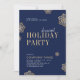 Celebrate the season with this modern annual holiday party invitations, feature minimal typography design and snowflake on color editable navy blue background, and company's logo template on the back, Great invitations for annual holiday party, family or company Christmas party.