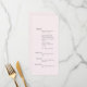 Introducing our Simple Soft Blush Elegant Romantic Solid Background Wedding Menu, a perfect blend of sophistication and charm designed to enhance your special day. This exquisite menu features a soft blush hue that exudes warmth and romance, making it an ideal choice for weddings that embrace a delicate and refined aesthetic. Crafted from high-quality materials, the menu showcases a minimalist design that allows your culinary offerings to take center stage while maintaining an elegant appearance. The solid background provides a timeless backdrop for beautifully printed text, ensuring that your guests can easily read the menu items. Whether you are hosting an intimate gathering or a grand celebration, this wedding menu will not only serve as a functional element but also as a stunning decorative piece that complements your overall wedding theme. Elevate your dining experience with this elegant menu that embodies the essence of love and celebration.