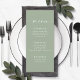 Simple Solid Color Light Leaf Green Wedding Menu. This modern chic Menu Card is simple classic and elegant with a plain solid color background and a pretty signature script calligraphy font with tails. Shown in the new Colorway. With a pretty monogram on the back side. Available in several color options, or feel free to edit the colors from within the editor (click customize further while personalizing).