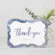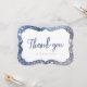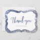 Faux sparkle silver and blue glitter background with "thank you" script in center, elegant and stylish, great thank you cards for wedding, birthday party, bridal shower, baby shower, or other special occasions.